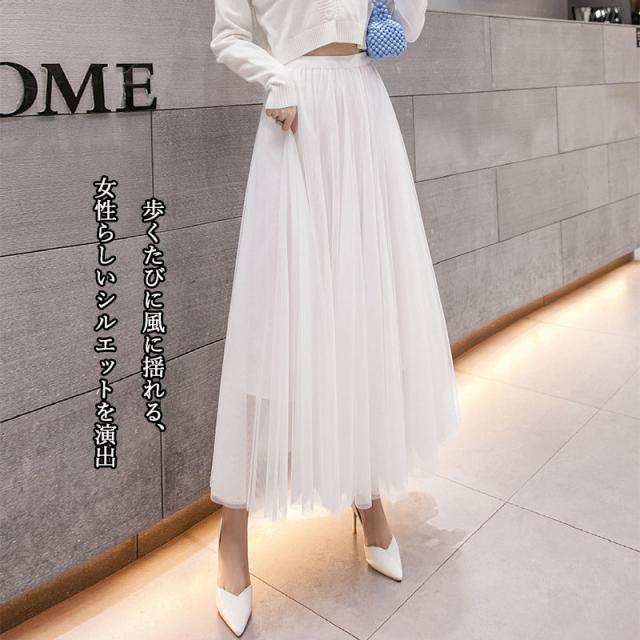ロングスカート プリーツスカート スカート レディース チュール ロング丈 ひざ下 ウエストゴム レース パーティー おしゃれ お洒落 ふんわり きれいめ 大人 入学祝い 母の日 成人式 同窓会 演奏会 謝恩会 着痩せ