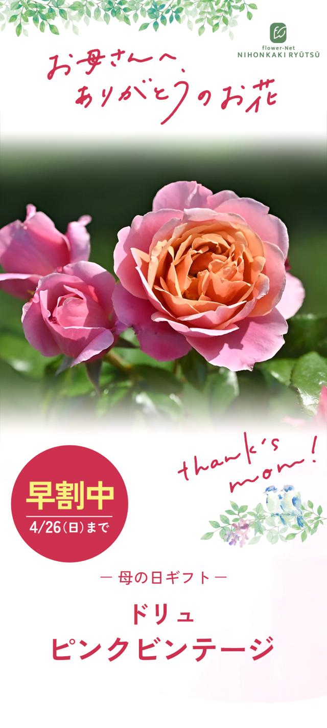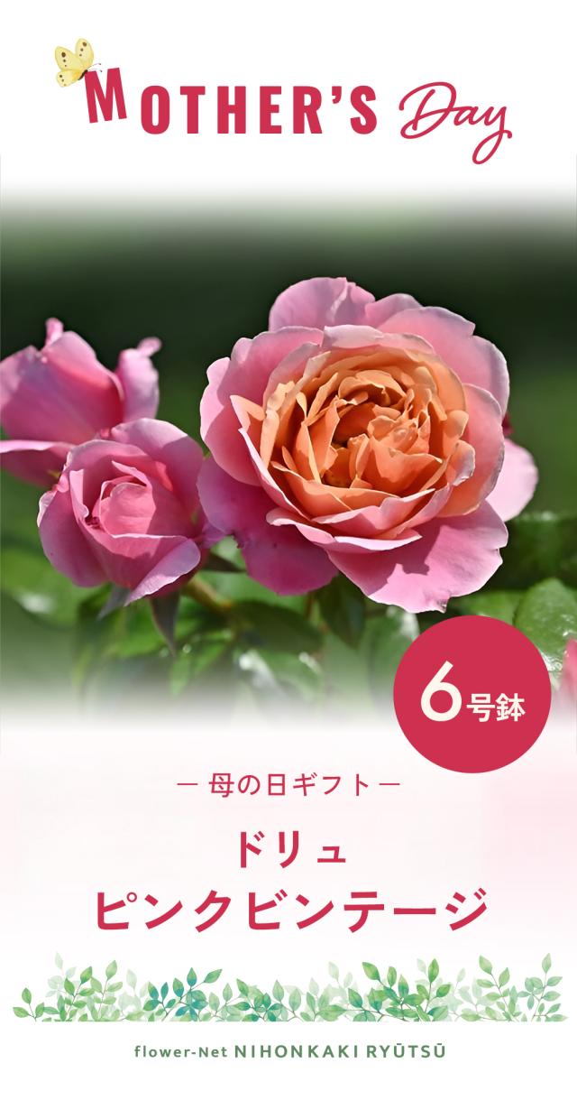 \ 早割 / 母の日 プレゼント バラ ドリュ ピンクビンテージ 品種登録出願中 6号鉢 送料無料 母の日ギフト 薔薇 花 鉢植え unu 日本花キ流通