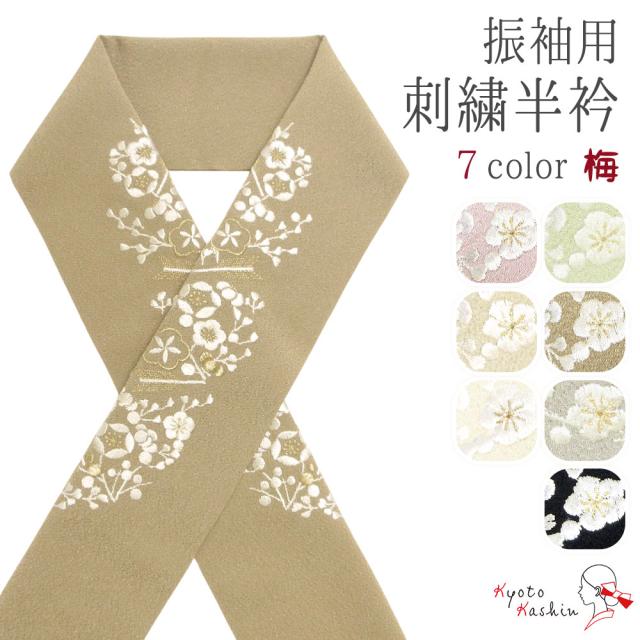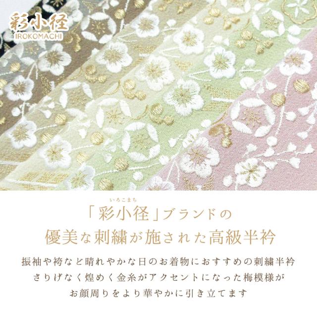 【2枚までメール便送料無料】刺繍半衿 刺繍 半襟 半衿 振袖 成人式 日本製 梅 金 白 ピンク 緑 アイボリー ベージュ 茶 グレー 黒 和装小物 袴 訪問着 色無地 小紋 紬 フォーマル 結婚式 前撮り おしゃれ 可愛い