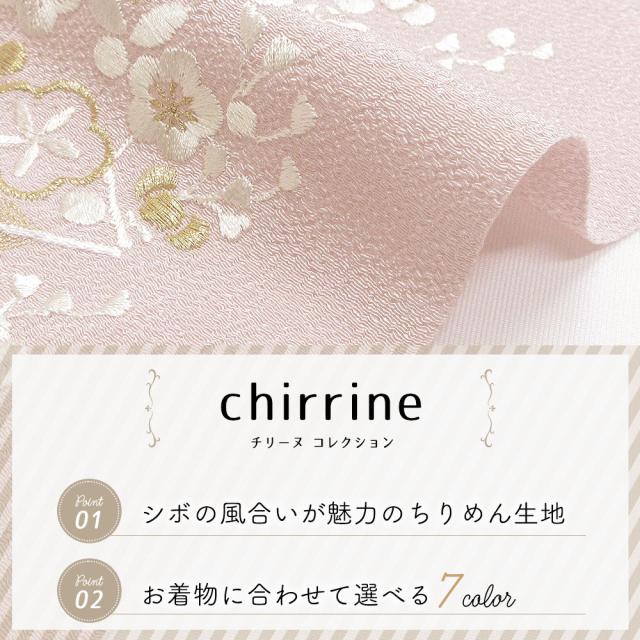 半衿生地には、シボの風合いが魅力のちりめん生地を使用。