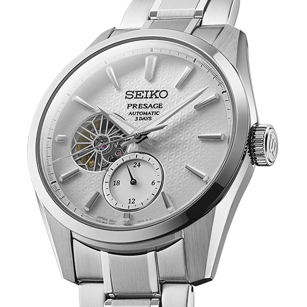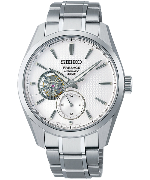 セイコー プレザージュ シャープエッジド 3Days SARJ001 メンズ 腕時計 メカニカル 麻の葉文様ダイヤル 白練 オープンハート コアショップ