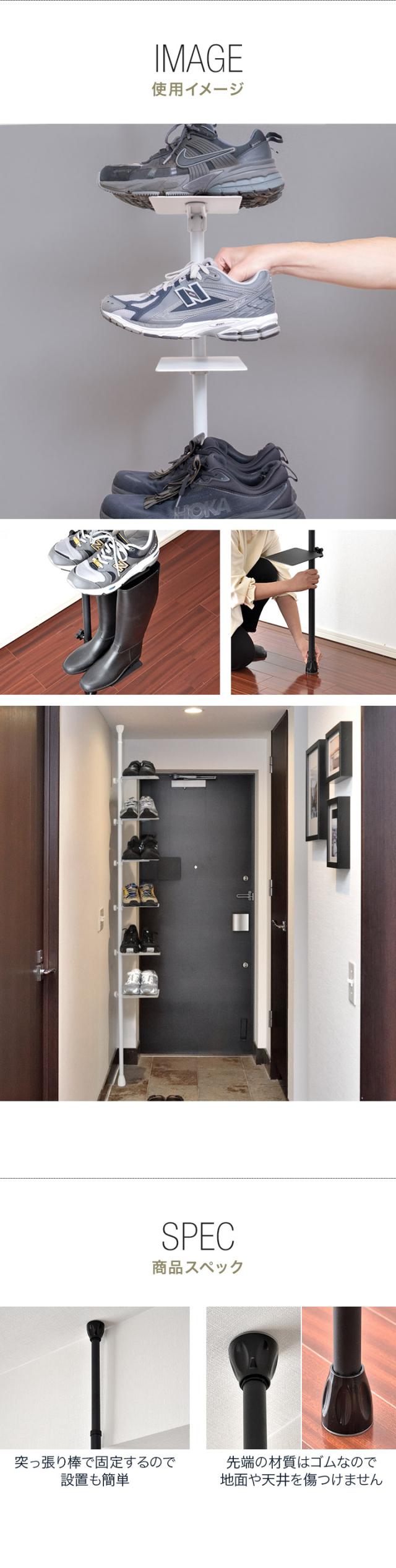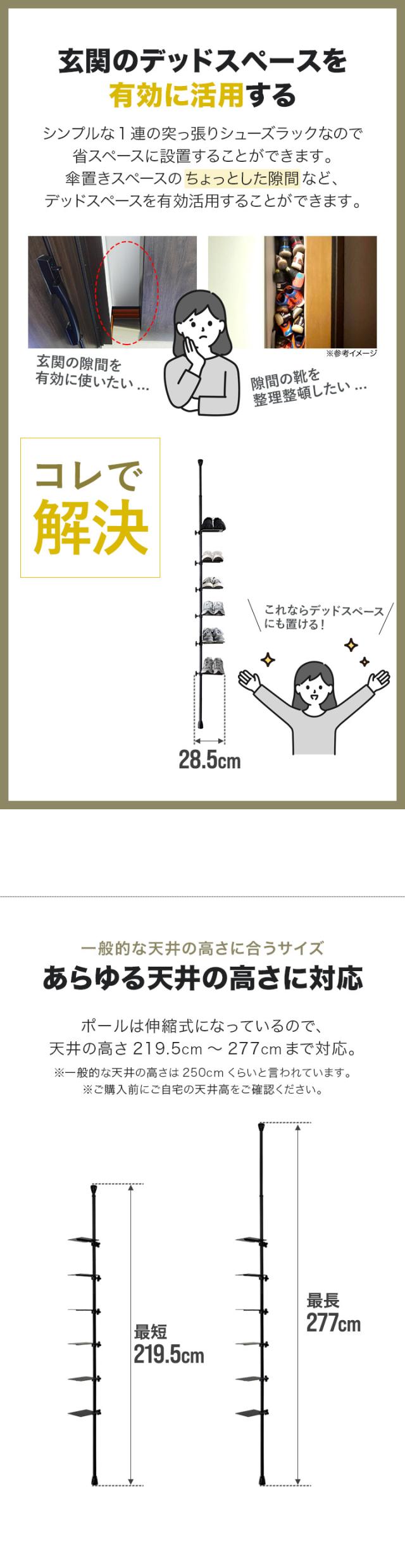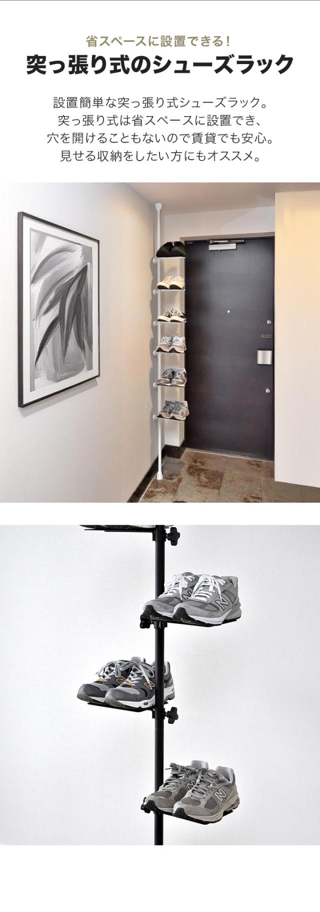 シューズラック スリム 省スペース 突っ張りラック 突っ張り棚 6段/6足 7段/8段/9段/10段 シューズ収納 縦 靴棚 玄関 靴箱 下駄箱 靴収納 突っ張り棒 棚 つっぱり棚 壁面収納 ブーツ スニーカー おしゃれ 収納棚 突っ張り式シューズラック 1年保証 送料無料