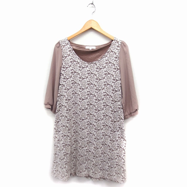 【中古】グローブ grove レース ワンピース 七分袖 ロング丈 スプーンネック シフォン袖 Aライン M モカ /FT35