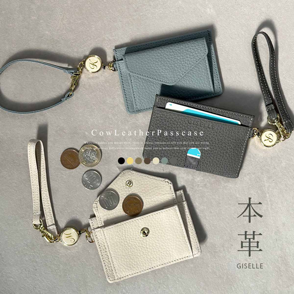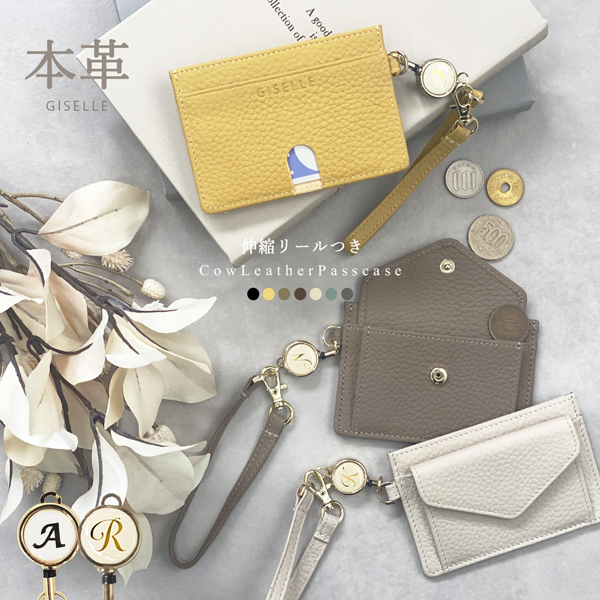 【今なら20%オフ!1,980円】【選べるイニシャルリール付き】パスケース IDケース 伸縮リール 小銭入れ ミニ財布 レディース メンズ 財布 薄い スリム 牛本革 レザー 薄型 軽量 送料無料 革 小さい財布 カード入れ おしゃれ 可愛い ギフト プレゼント