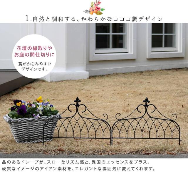 フェンス 屋外 アイアン アイアンフェンス ガーデニング 庭 簡単 ガーデン ガーデンフェンス アンティーク 柵 挿すだけ 埋め込み セット 黒 ミニ 花壇 おしゃれ 簡単取り付け 簡単設置 本体 園芸 鉄 つる性植物 バラ 誘引 隣家