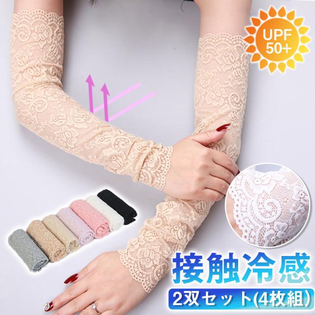 【2点ご購入で300円OFF】レースアームカバー レース アーム カバー 2双セット(4枚組) UV レディース 可愛い UVカット シンプル 日よけ防止 UP