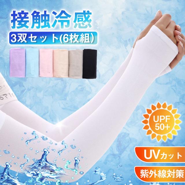 【3双セット】アームカバー レディース UVカット UV手袋 冷感 日焼け防止 日焼け対策 ロング 夏 腕 指穴タイプ 紫外線 運
