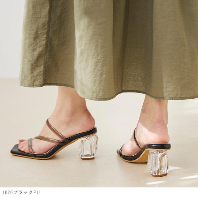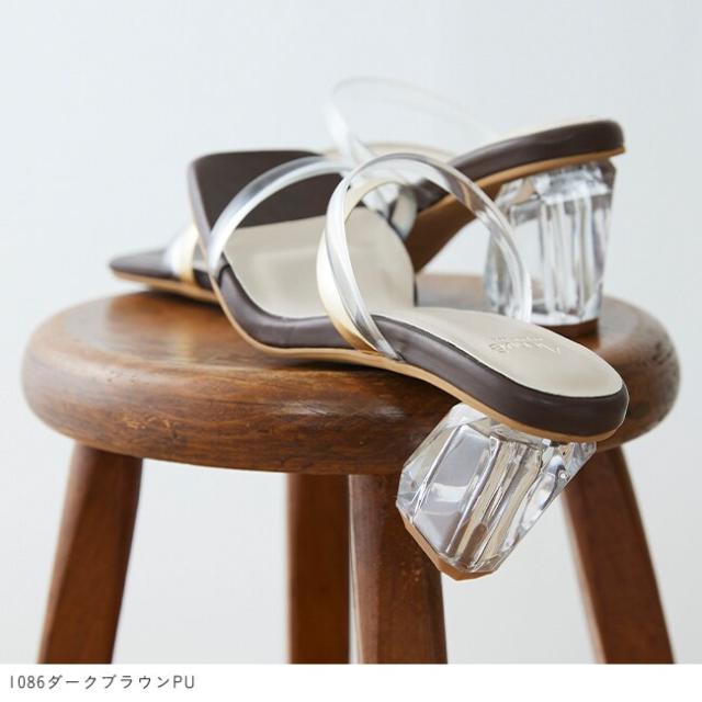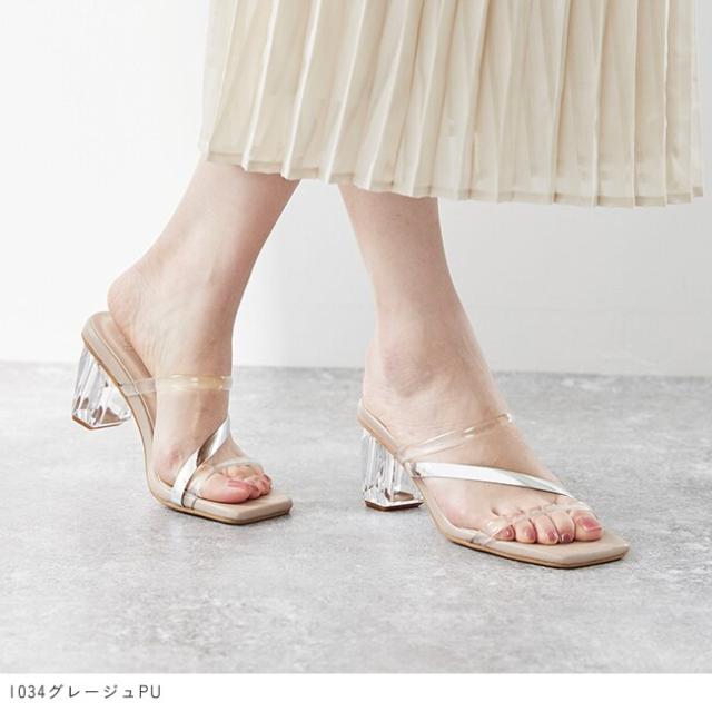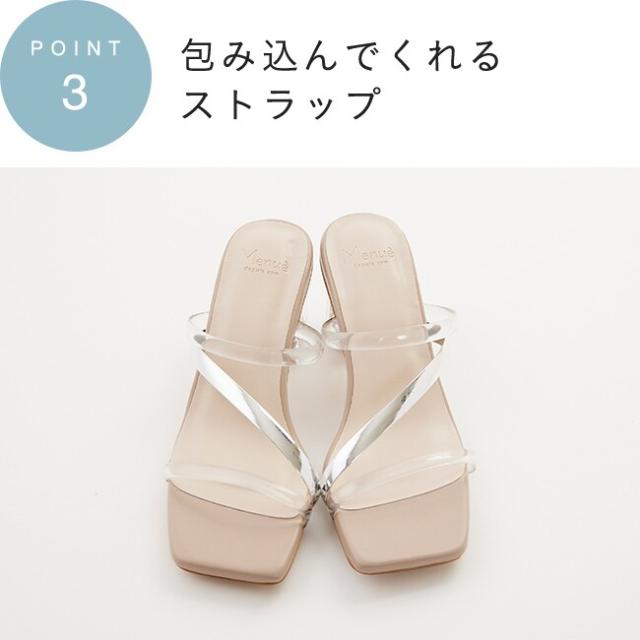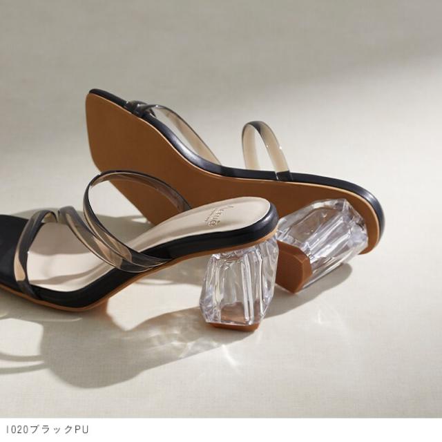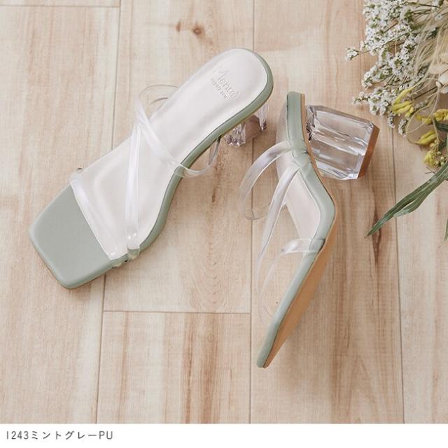 メヌエ(menue)/スクエアトゥ 多角形クリアヒールサンダル
