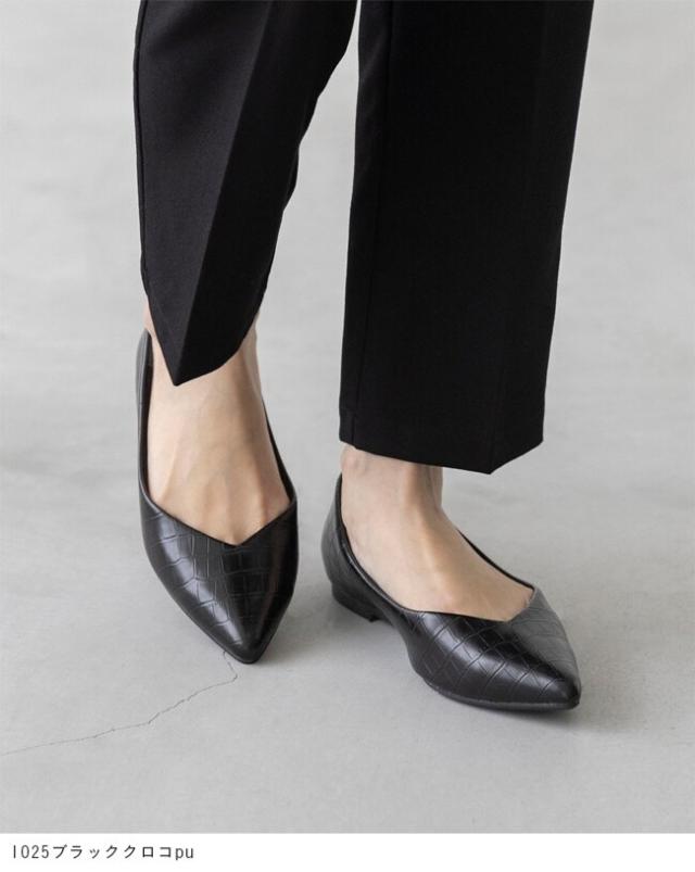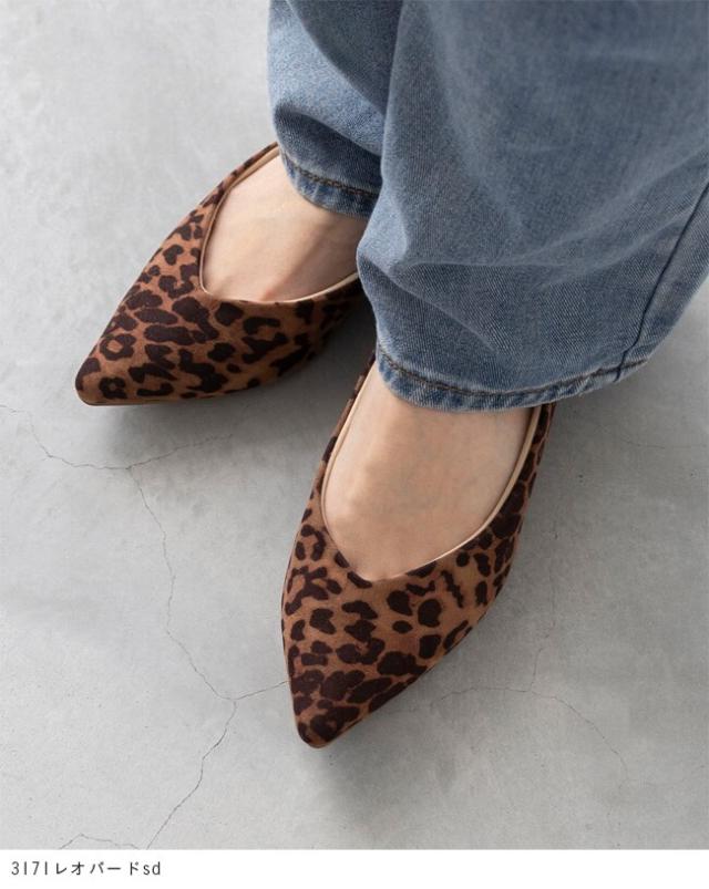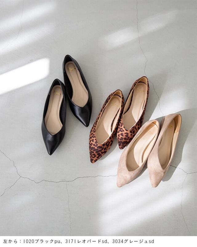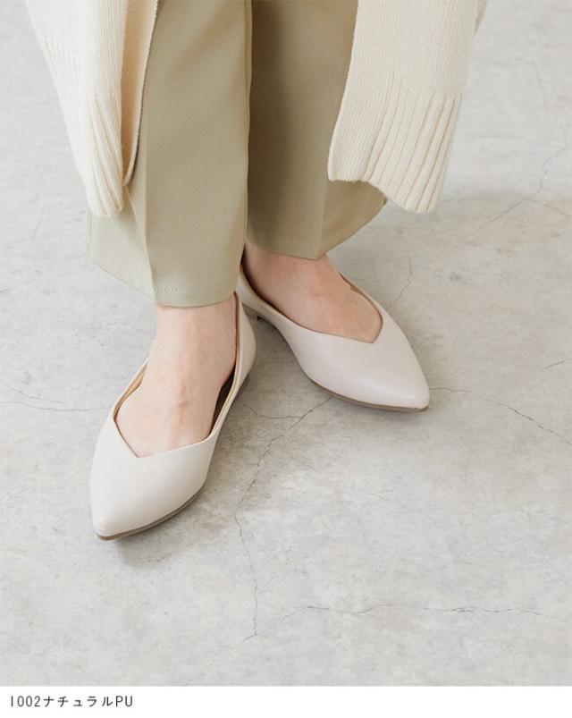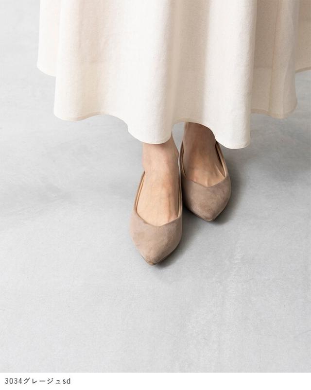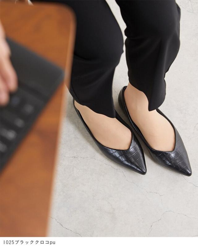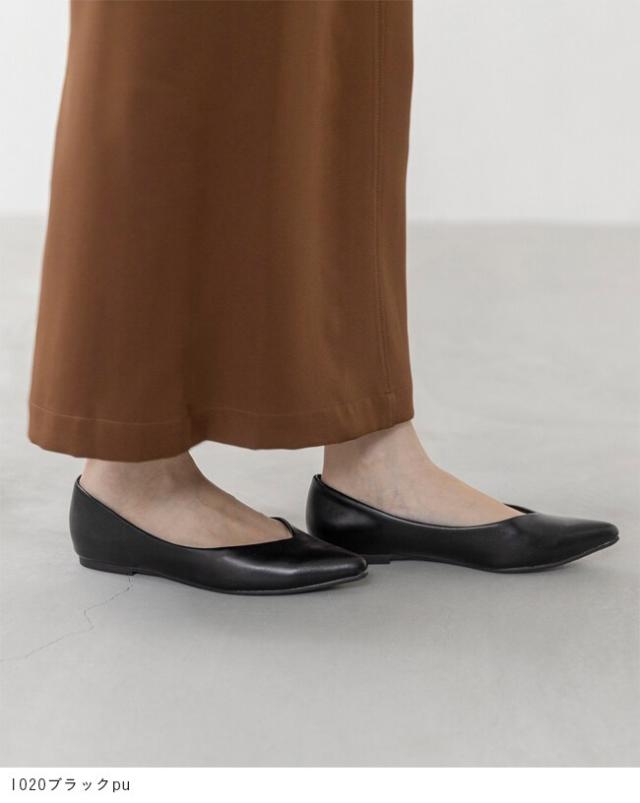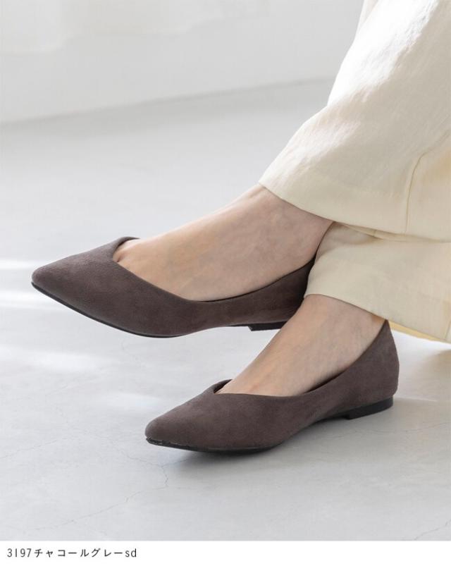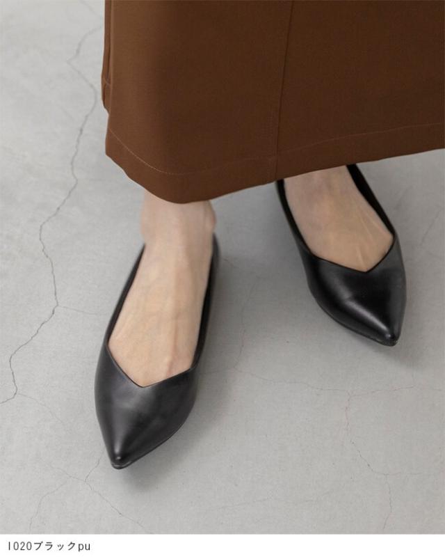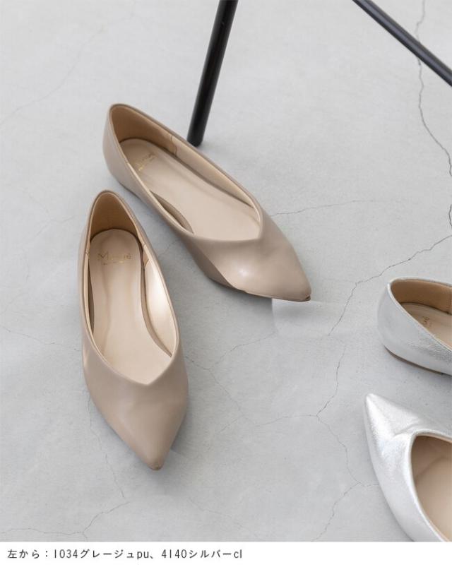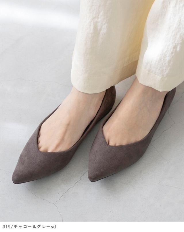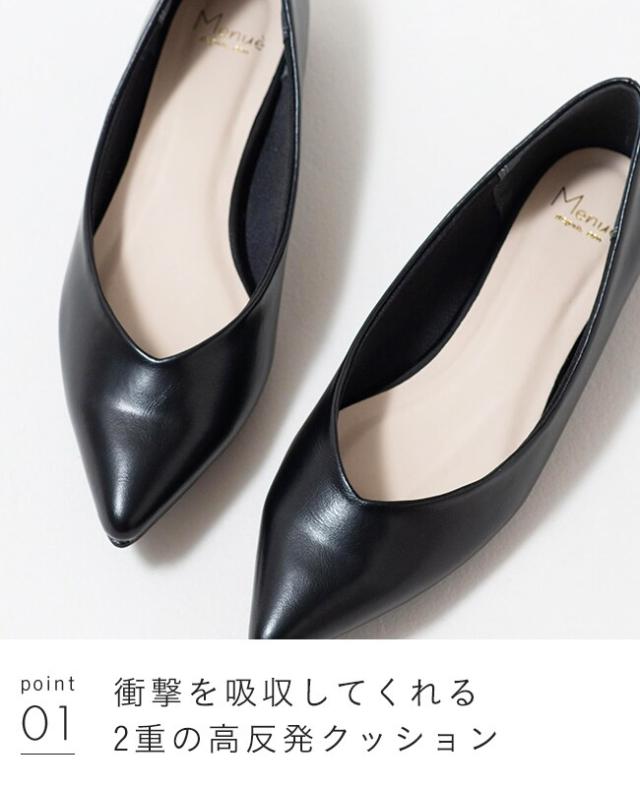 ポインテッドトゥ Vカットデザイン ローヒール パンプス [ menue メヌエ ]