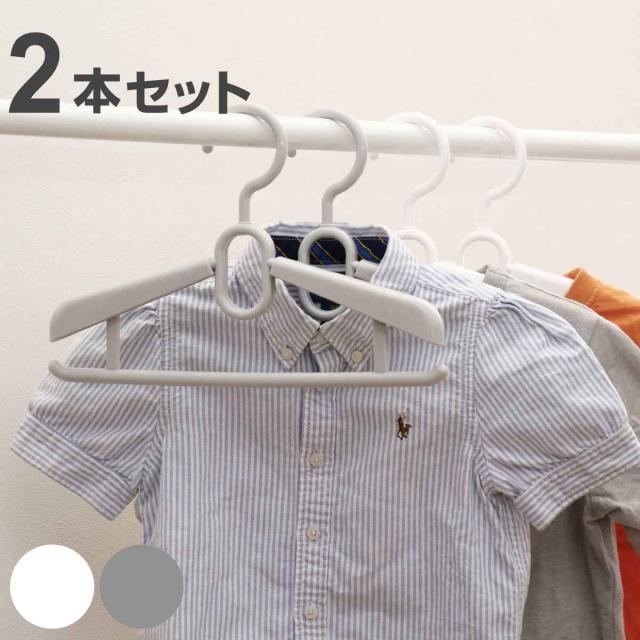ハンガー 子ども用 2本セット ジュニアスライドハンガー ( 衣類収納 洋服ハンガー 伸縮 子ども 2本 衣類 収納用品 すべり止め 収納 キッズ シンプル ホワイト グレー )
