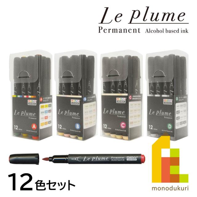 マービー ルプルームパーマネント(アルコールマーカー) 12色セット【基本/パステル/人物/グレートーン】