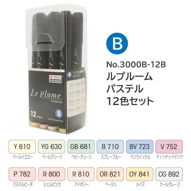 ●Bセット(黒軸):パステル12色セット(No.3000B-12B)