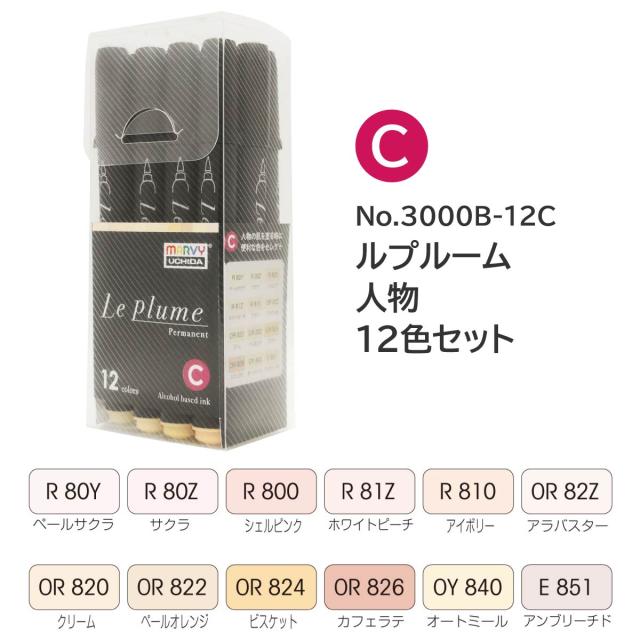 ●Cセット(黒軸):人物12色セット(No.3000B-12C)