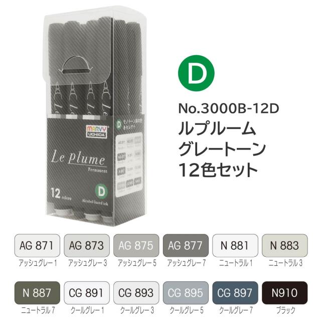 ●Dセット(黒軸):グレートーン12色セット(No.3000B-12D)