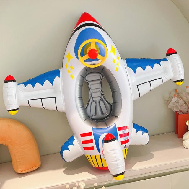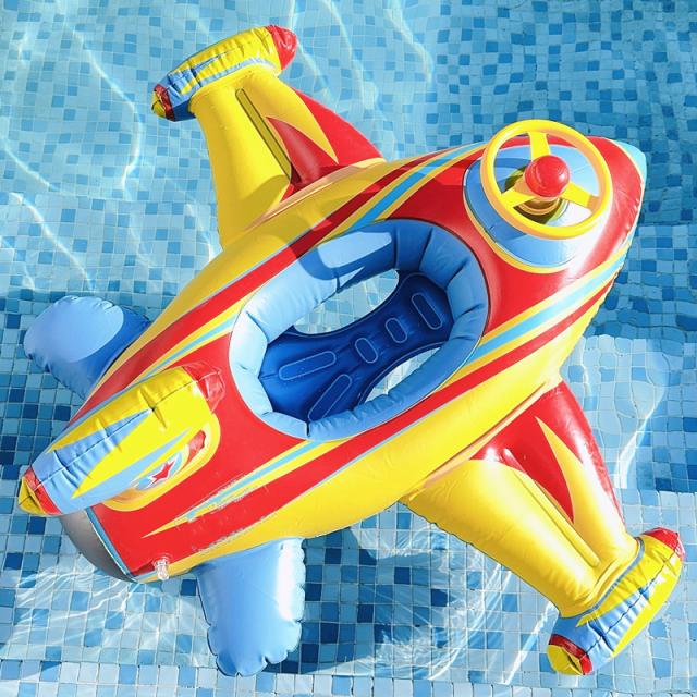 フロート 浮き輪 足入れ 飛行機 ハンドル付き 浮き具 水鉄砲付き 水泳リング 子供用 乗り物 水遊び プール ビ