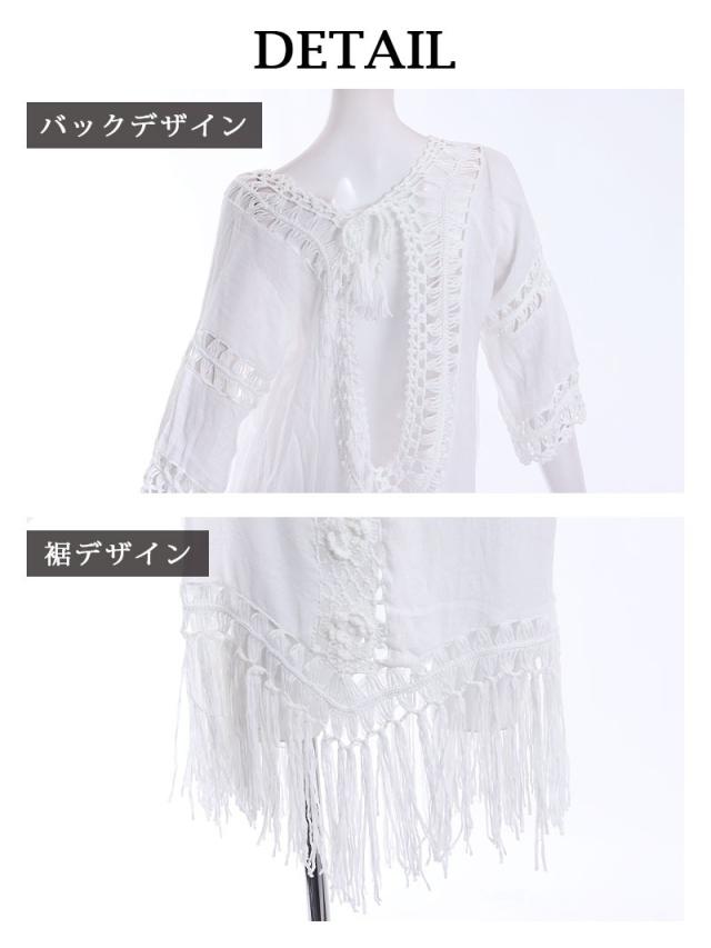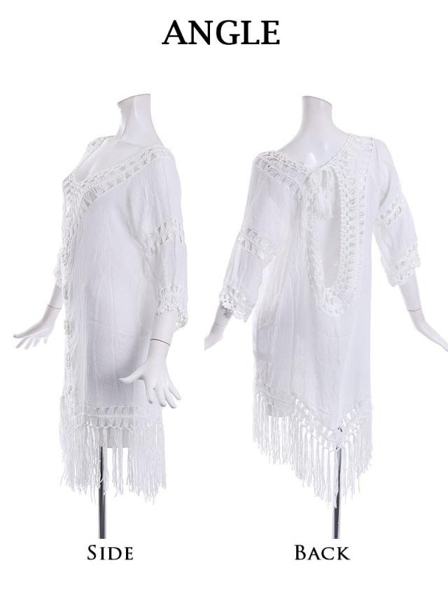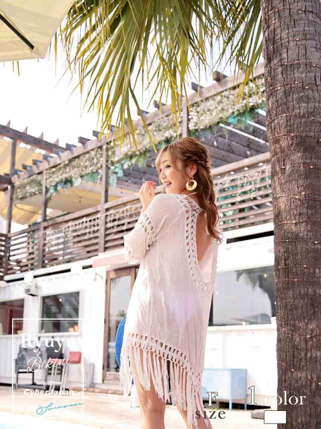 水着 ビーチウェア レディース 水着 Ryuyu ビーチウェア フリンジ 白 ビーチアウター