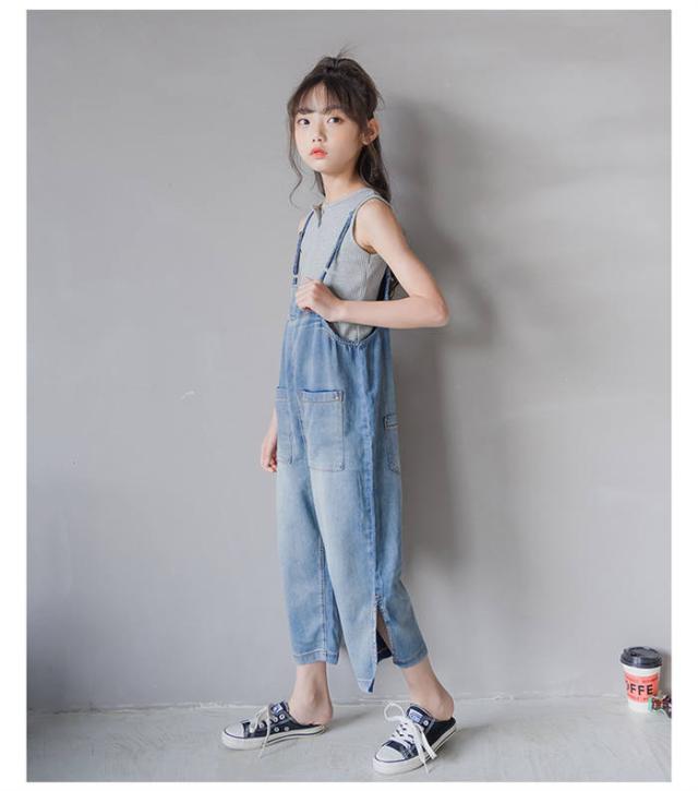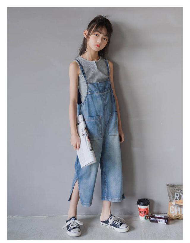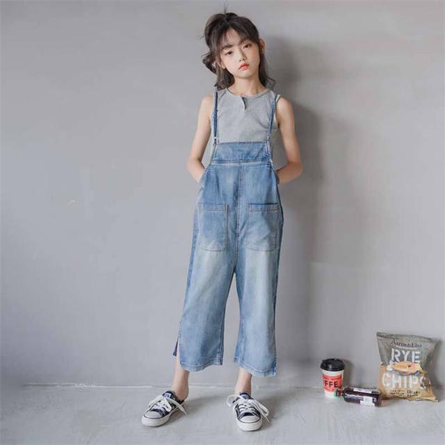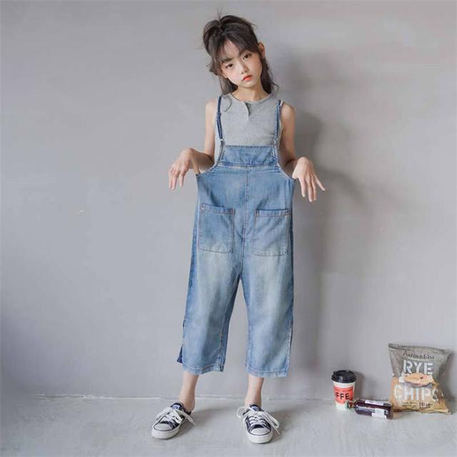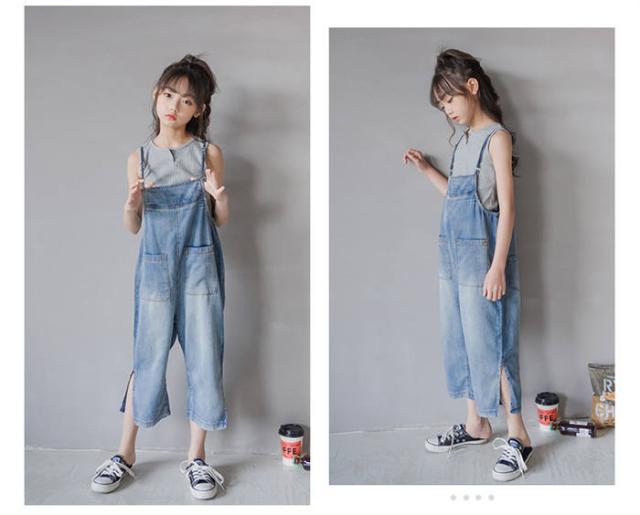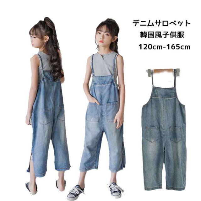 商品名:デニムサロペット キッズ サロペットパンツ 女の子 オーバーオール デニム ワイドパンツ 女児 子ども オールインワン ジーンズ ジュニアサロペット ガールズ 春秋パンツ 子供服 韓国風 子ども服 カジュアル 小学生 人気 送料無料