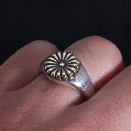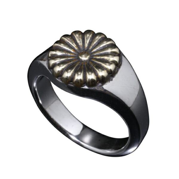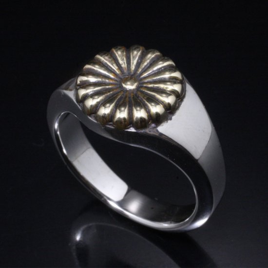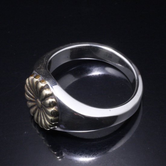 【龍頭】 シルバー×真鍮 菊印台 リング(丸型) (10〜27号)