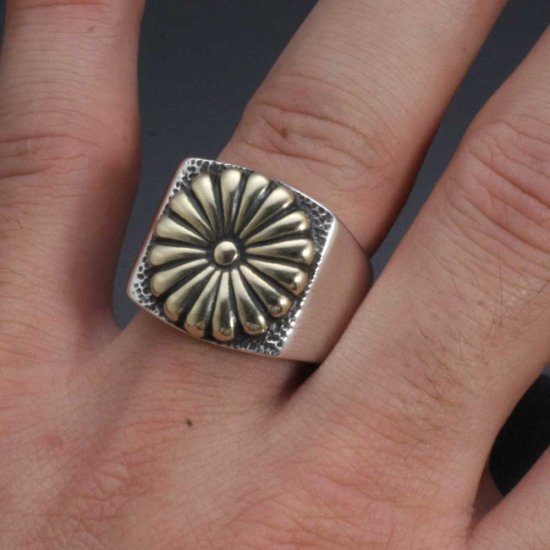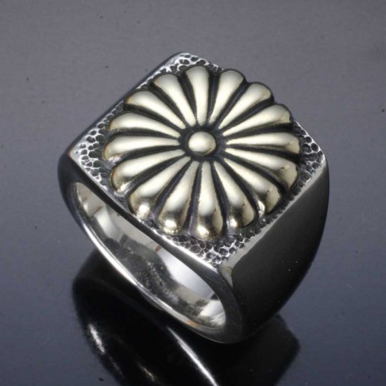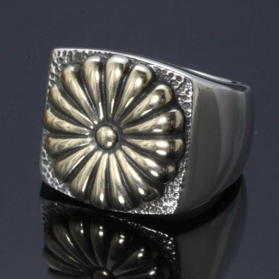 【龍頭】 シルバー×真鍮 菊印台 リング (15〜28号)