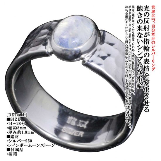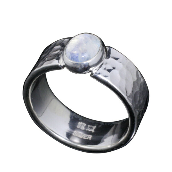 龍頭 レインボームーンストーン 丸鎚目 リング 幅8mm 14〜27号 指輪 メンズ シルバー シルバーリング メンズリング シルバー950 男性 彼氏 伝統技法