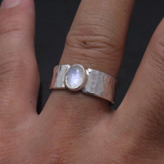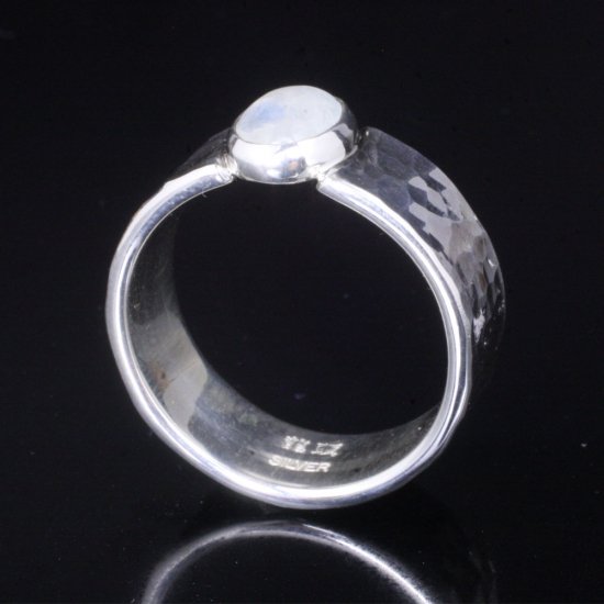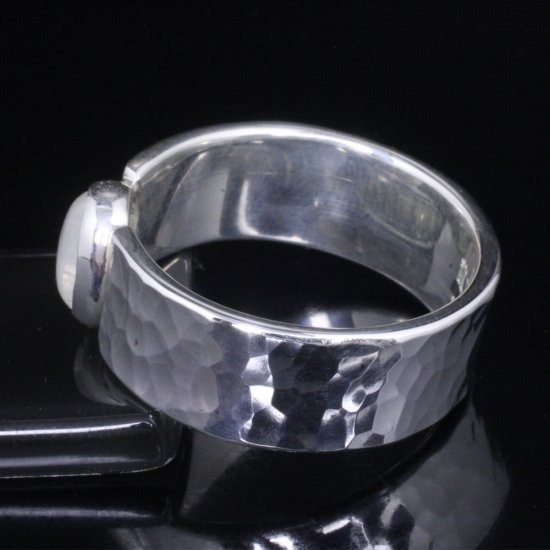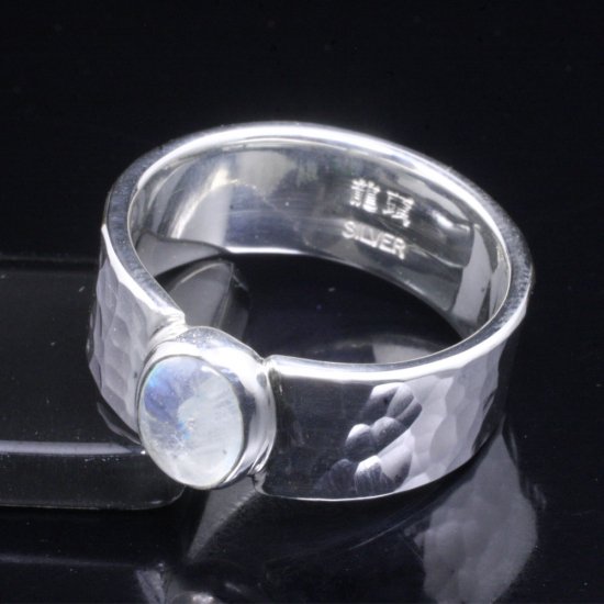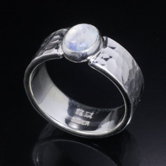【龍頭】 レインボームーンストーン 丸鎚目 リング 幅8mm (14〜27号)
