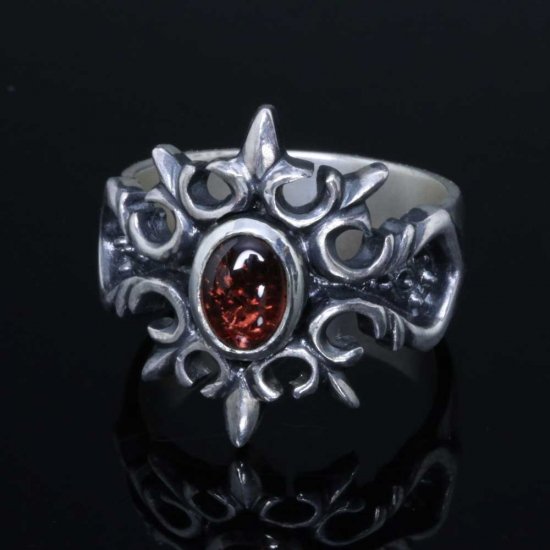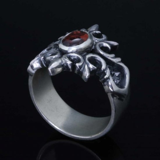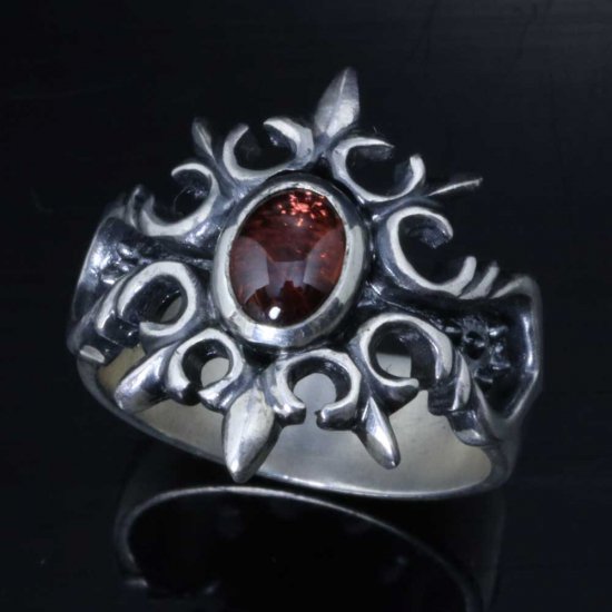 【龍頭】 ガーネット 霰十字 リング (14〜24号)