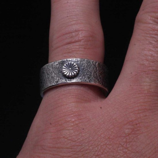 岩石模様が施された平打ちリングに