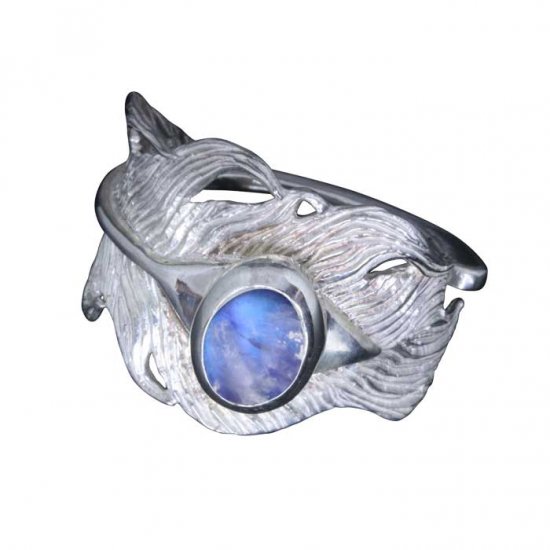 レインボームーンストーンに龍頭がオリジナルの加工を施した天然石を