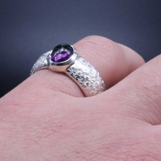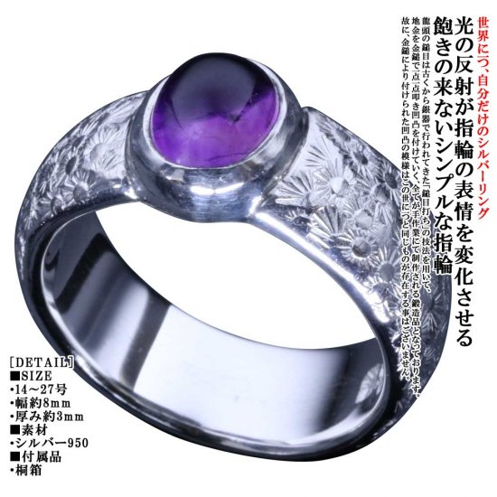 (シルバーアクセサリーシルバージュエリー シルバーブランド シルバー シルバーリング 指輪 シルバー950 メンズリング 日本 和風 和柄 伝統技法 日本製 国内 国産 made in JAPAN メイドインジャパン ドメスティック 親指 人差指 人差し指 中指 薬指 小指 シンプル ペア ペアリング 槌目 鎚目 結婚指輪 甲丸 甲丸リング 花 フラワー 植物 アメジスト 天然石 誕生石 紫 パープル 2月 14号 15号 16号 17号 18号 19号 20号 21号 22号 23号 24号 25号 26号 27号)