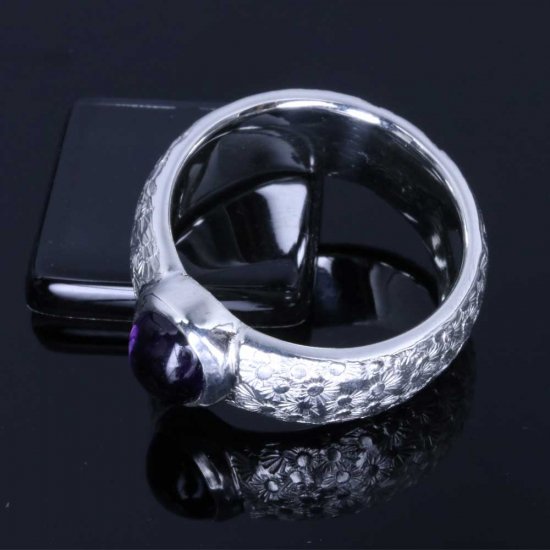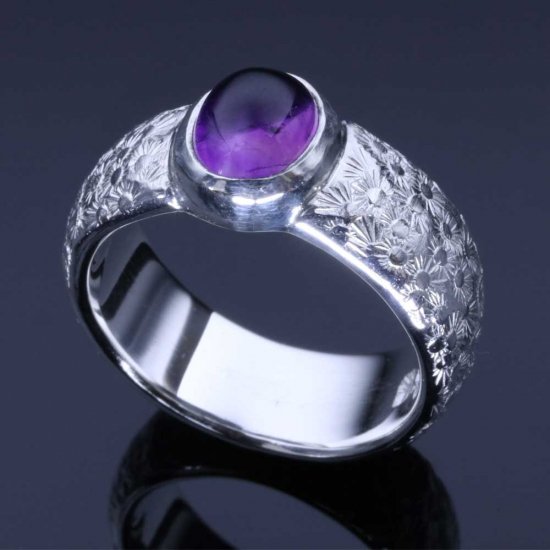 【龍頭】 幅8mm アメジスト 甲丸小花鎚目 リング (14〜27号)