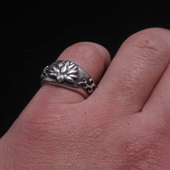 (シルバーアクセサリーシルバージュエリー シルバーブランド シルバー シルバーリング 指輪 シルバー950 メンズリング 日本 和風 和柄 伝統技法 日本製 国内 国産 made in JAPAN メイドインジャパン ドメスティック 親指 人差指 人差し指 中指 薬指 小指 ごつい ごつめ 蓮 ハス 仏 花 フラワー 植物 4号 5号 6号 7号 8号 9号 10号 11号 12号 13号 14号 15号 16号 17号 18号 19号 20号)