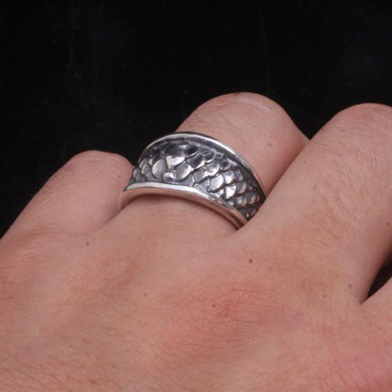 龍の鱗を表現したシルバーリング。