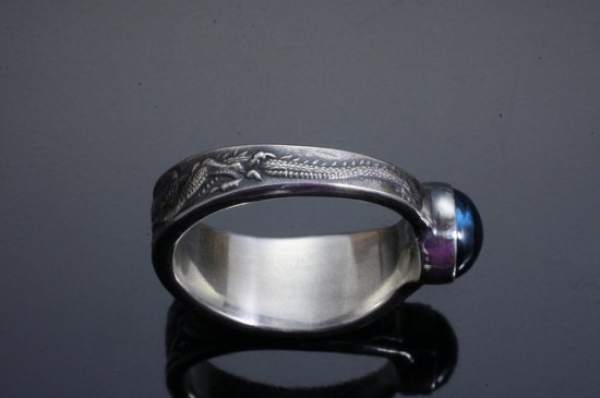 天然石の幻想的な輝きと、龍の神秘的な魅力が際立つリング。