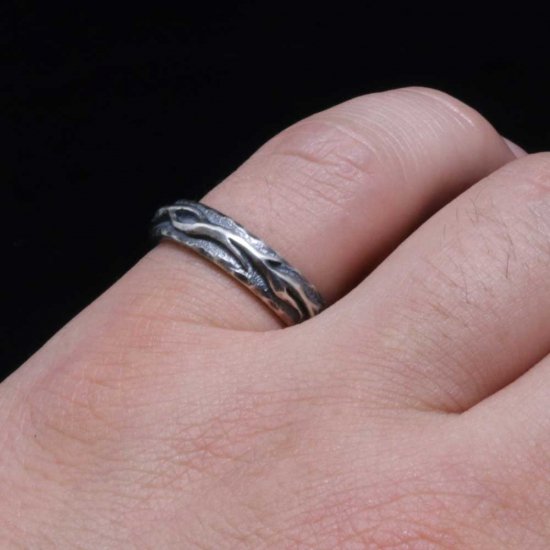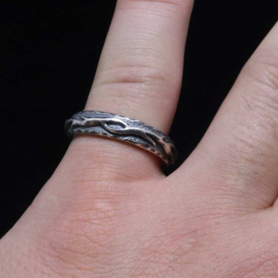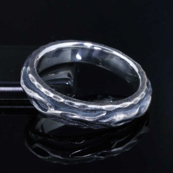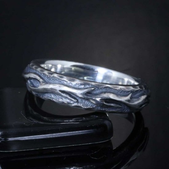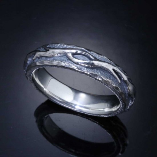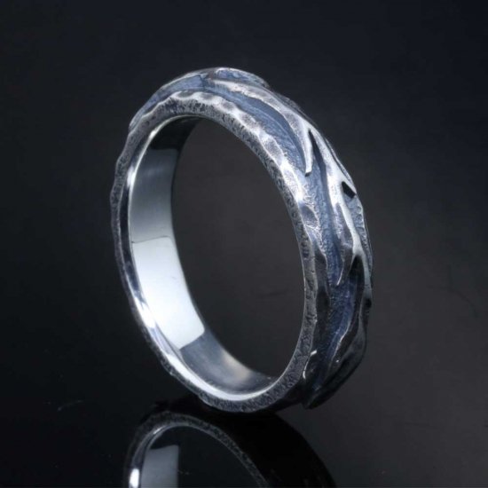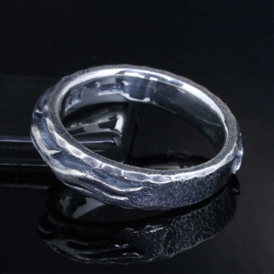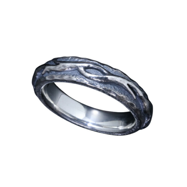【龍頭】 燻し仕上げ 平打ち火焔 リング (11〜25号)