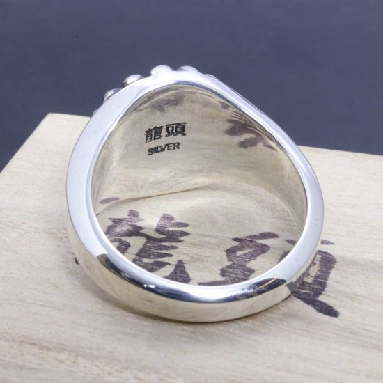 龍頭 菊 印台 リング 丸型 15〜28号 指輪 花 メンズ シルバー シルバーリング メンズリング シルバー950 男性 彼氏 伝統技法 ギフト 人気 おしゃれ