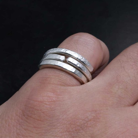 龍頭 丸鎚目 & 岩石丸鎚目 リング 11〜25号 指輪 重ね付け メンズ シルバー シルバーリング メンズリング シルバー950 男性 彼氏 伝統技法 ギフト