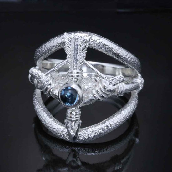 【龍頭】 白仕上げ 天然石付き 生弓矢 リング (15〜27号)
