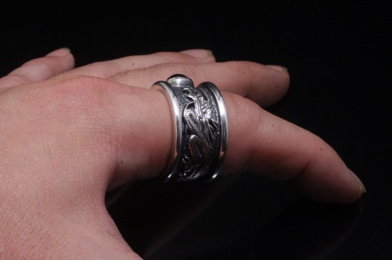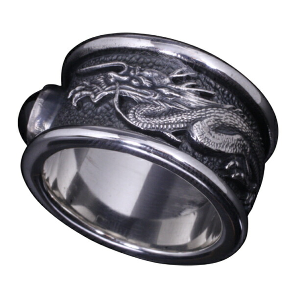 肉厚なリングに燻されたボディがさらに龍の迫力を引き立てている。