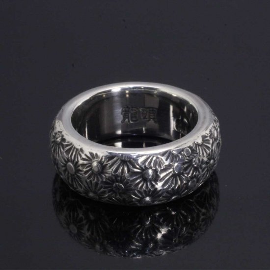 龍頭 甲丸 小花 鎚目リング 12〜27号 指輪 花 メンズ シルバー シルバーリング メンズリング シルバー950 男性 彼氏 伝統技法 ギフト 人気 おしゃれ