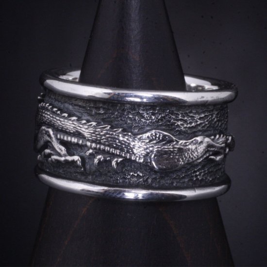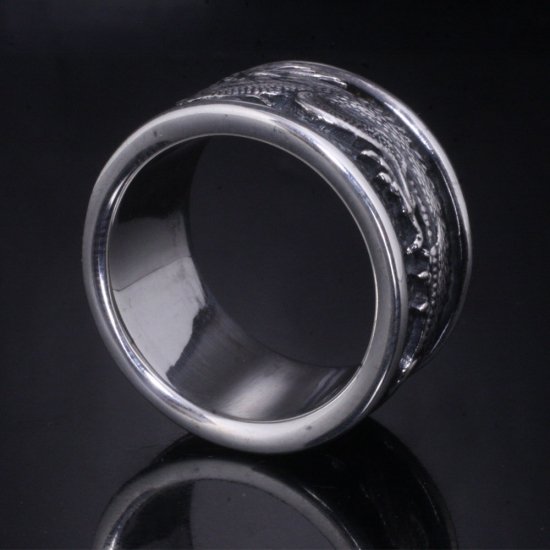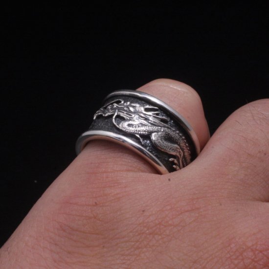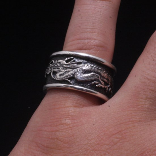 龍が指を取り巻く迫力あるシルバーリング。