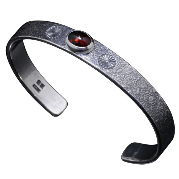 (シルバーアクセサリー シルバーバングル メンズバングル シルバー950 ガーネット 菊 菊紋 菊十六紋 御紋 菊の紋章 菊花紋章 愛国 ハンドメイド 和柄 和風)