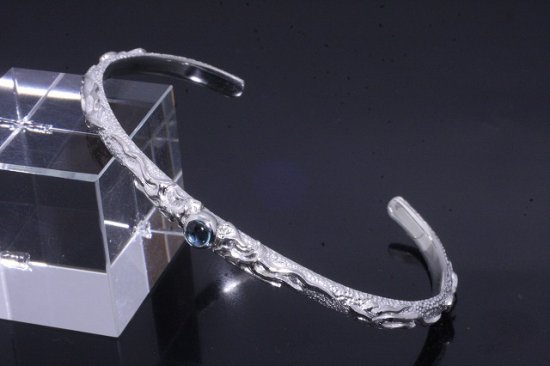 龍頭 火焔 バングル ブルートパーズ メンズ シルバー シルバーバングル メンズバングル シルバー950 男性 彼氏 伝統技法 ギフト 人気 おしゃれ