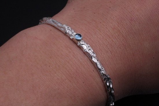 (シルバーアクセサリー シルバーバングル メンズバングル シルバー950 ブルートパーズ 炎 火炎 火 ファイヤー ファイヤーパターン ハンドメイド 和柄 和風)