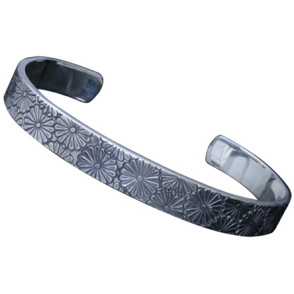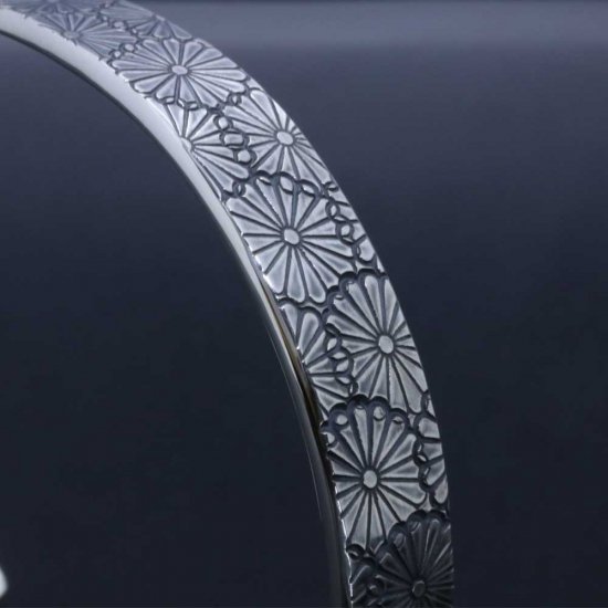 菊紋をバングルいっぱいにスタンプワークしたシルバーバングル。