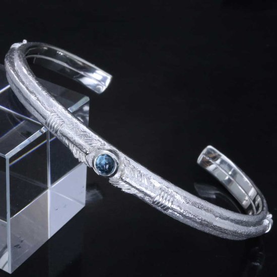 【龍頭】 天然石付 白仕上げ 生二本矢 バングル