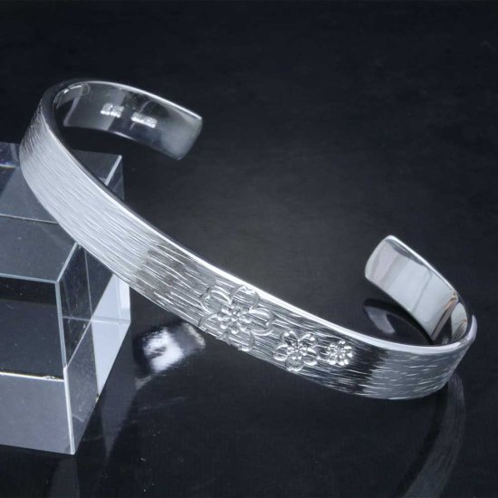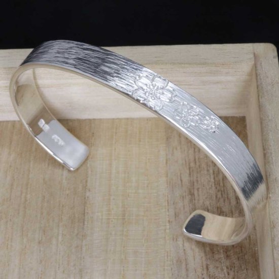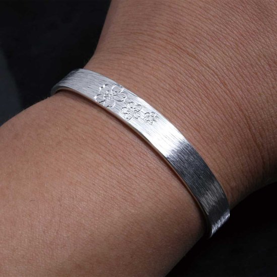 (シルバーアクセサリー シルバーバングル メンズバングル シルバー950 桜 さくら サクラ SAKURA 愛国 ハンドメイド 和柄 和風 サイズ調整)