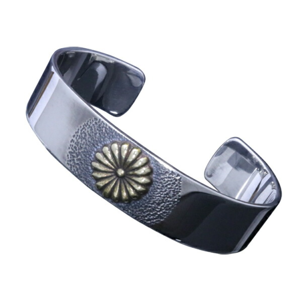 (シルバーアクセサリー シルバーバングル メンズバングル シルバー950 真鍮 ブラス 菊 菊紋 菊十六紋 御紋 菊の紋章 菊花紋章 愛国 ハンドメイド 和柄 和風)