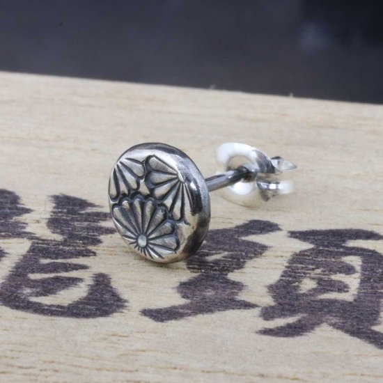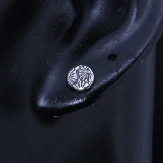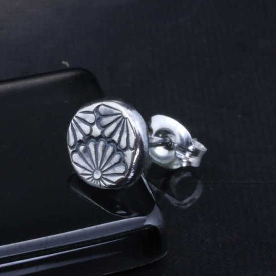 菊紋を約7mm幅ほどのベースいっぱいにスタンプワークしたピアスになります。
