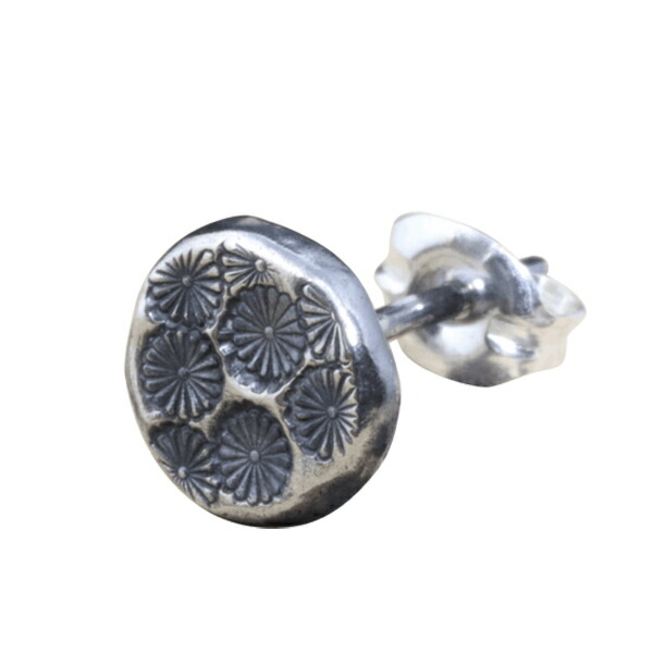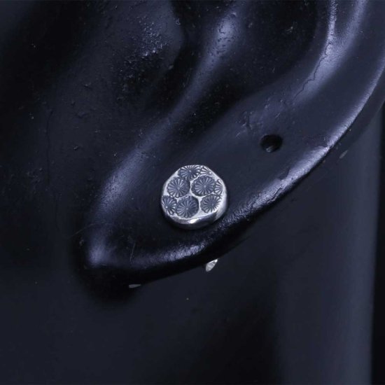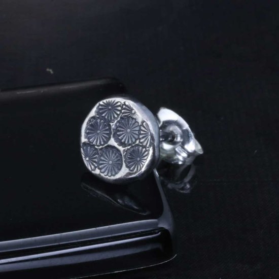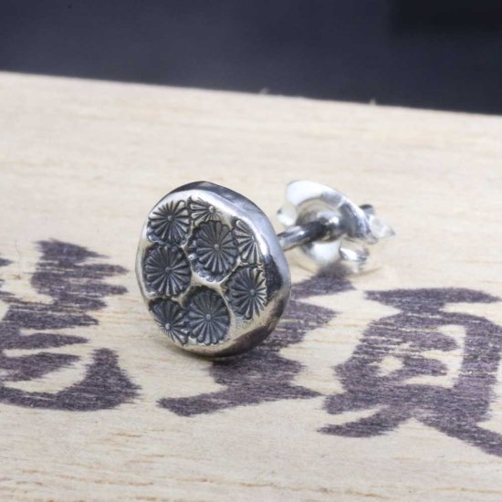 菊紋を約7mm幅ほどのベースいっぱいにスタンプワークしたピアスになります。