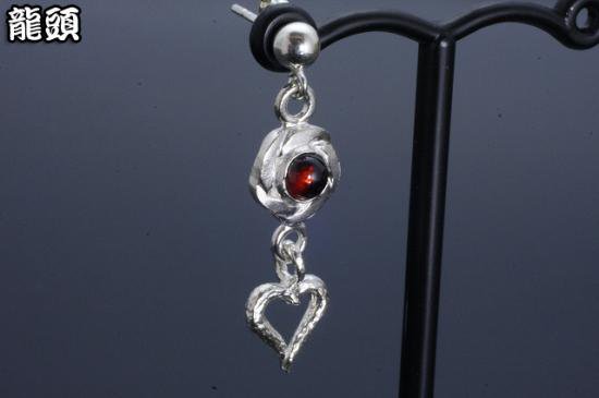 龍頭 岩石ハート×花ツイスト ピアス 1P 片耳用 天然石 レディース シルバー シルバーピアス スタッド レディースピアス シルバー950 女性 彼女